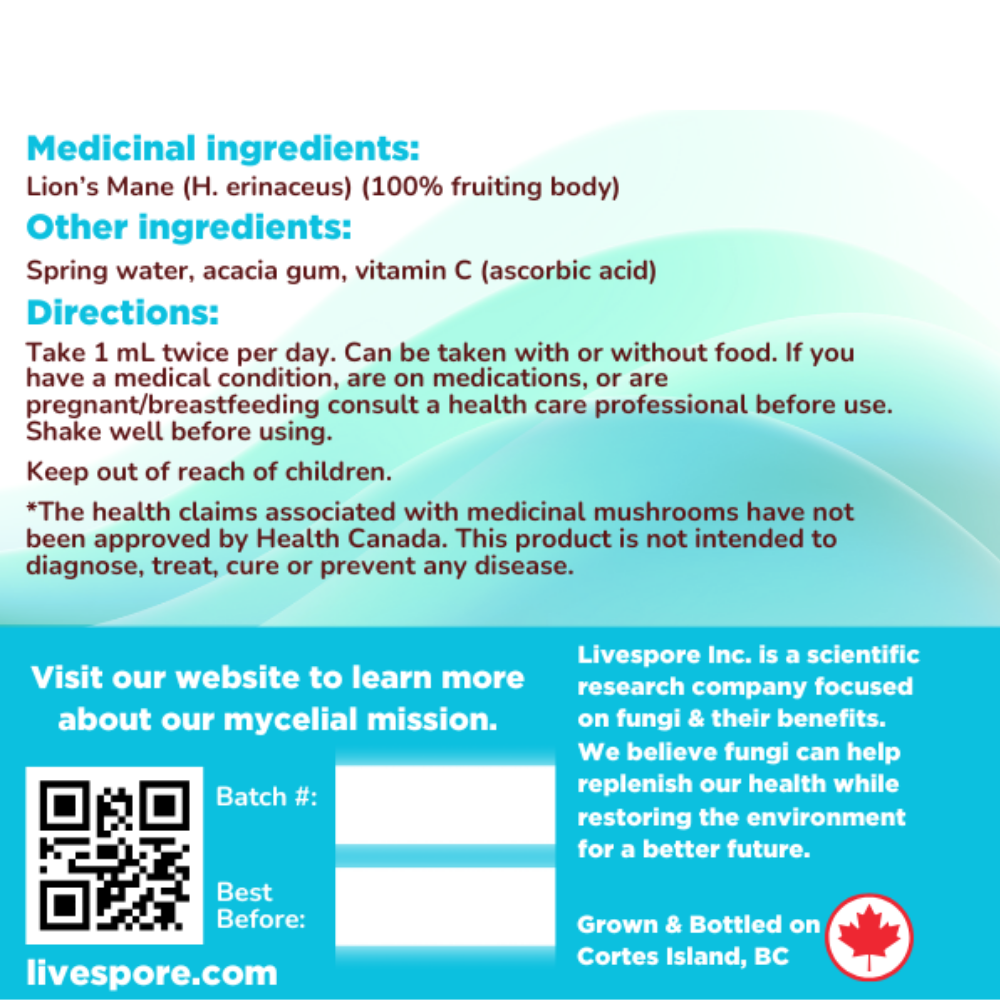 Unlock the power of nature with our Lion’s Mane Tincture, a dual-extract, alcohol-free formula crafted from 100% fruiting body mushrooms, sustainably cultivated on Vancouver Island, BC. From spore to bottle, we oversee every step to ensure the highest quality, potency, and purity in every drop.